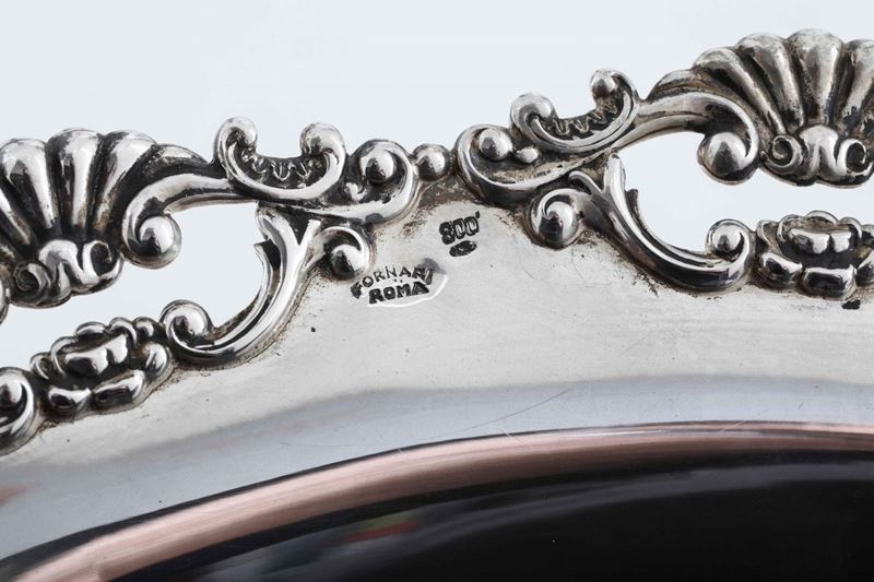 Alzata circolare in argento. Argenteria artistica italiana del XX secolo. Punzone Fornari, Roma e bolli con fascio littorio [..]