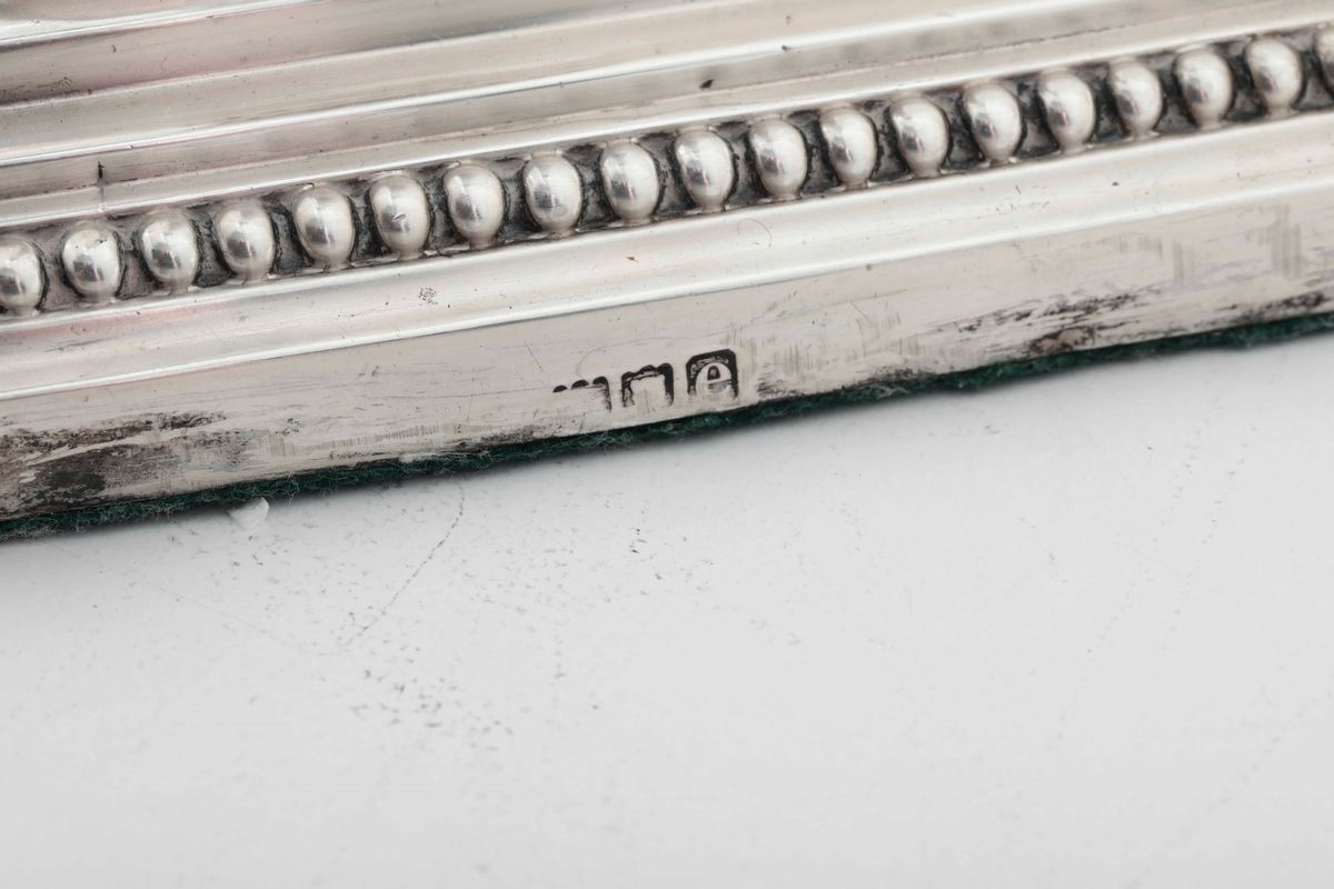 Candeliere in argento fuso e cesellato. Inghilterra, Londra (?) 1900 (bolli consunti di difficile lettura)