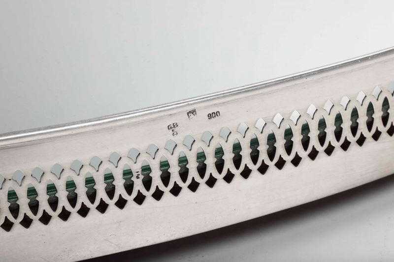 Centrotavola in argento con specchio molato. Manifattura artistica italiana del XX secolo