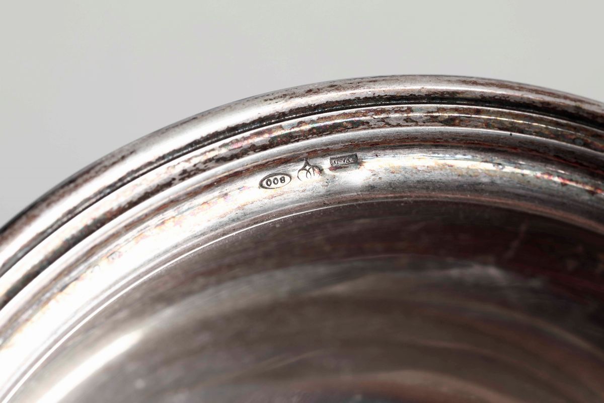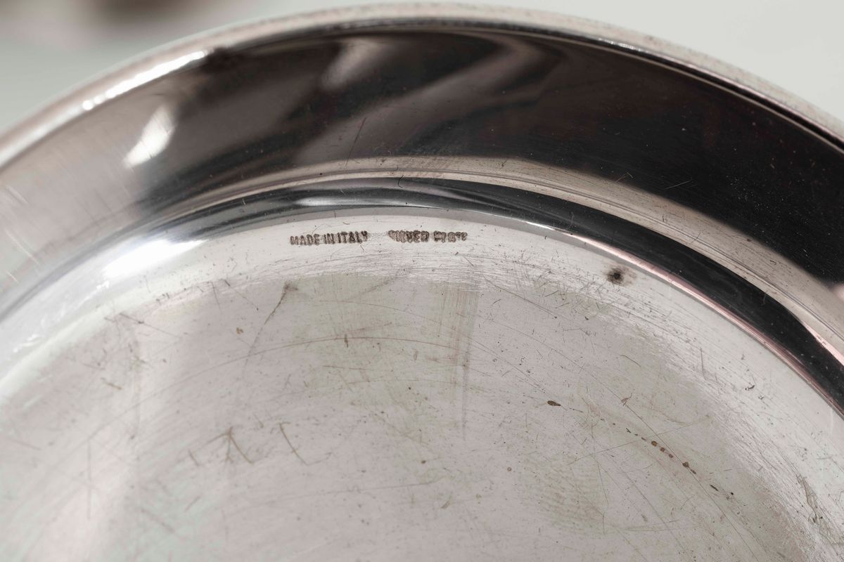 Cinque tra ciotole e coppette differenti in argento e una in metallo argentato. Varie manifatture italiane del XX secolo