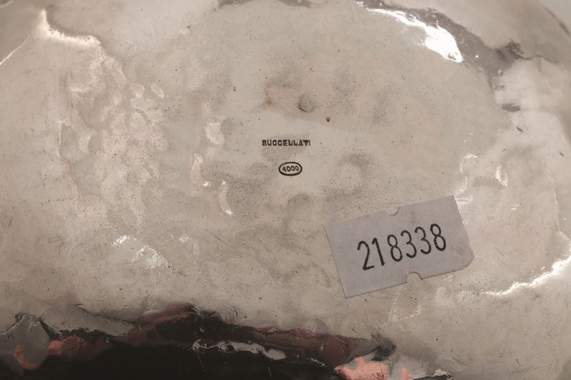 Foglia in metallo argentato. Firma Buccellati, XX secolo