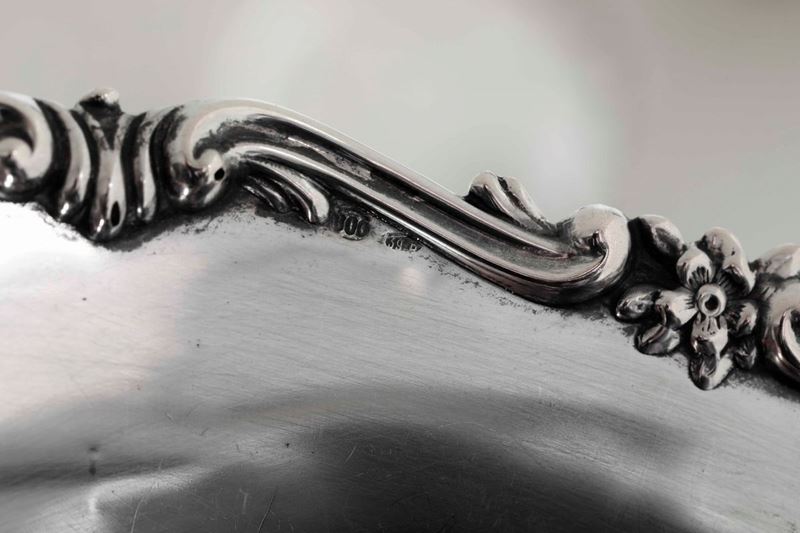 Insieme di due centrotavola e un'alzata in argento. Differenti manifatture italiane del XX secolo