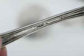 Insieme di due pinze e un grande cucchiaio traforato in argento, XIX secolo