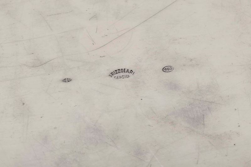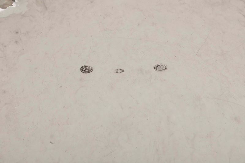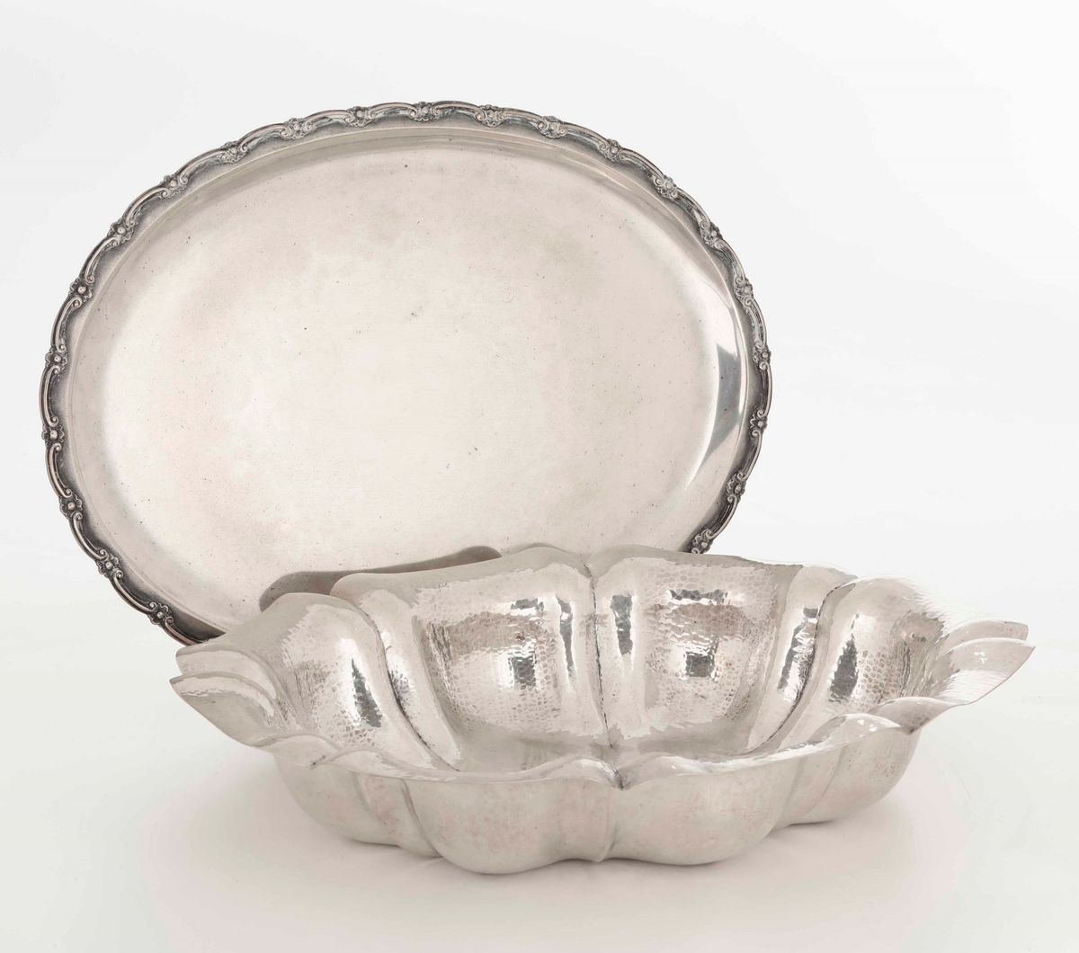 Lotto composto da centrotavola e vassoio in argento. Argenteria italiana del XX secolo