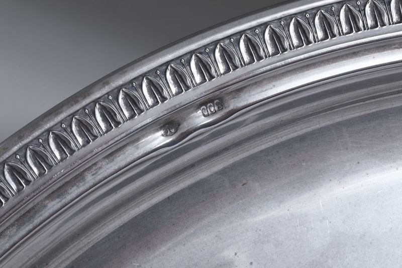 Lotto di argenti composto da tre piatti circolari di cui uno con bordo sagomato. Argenteria italiana del XX secolo