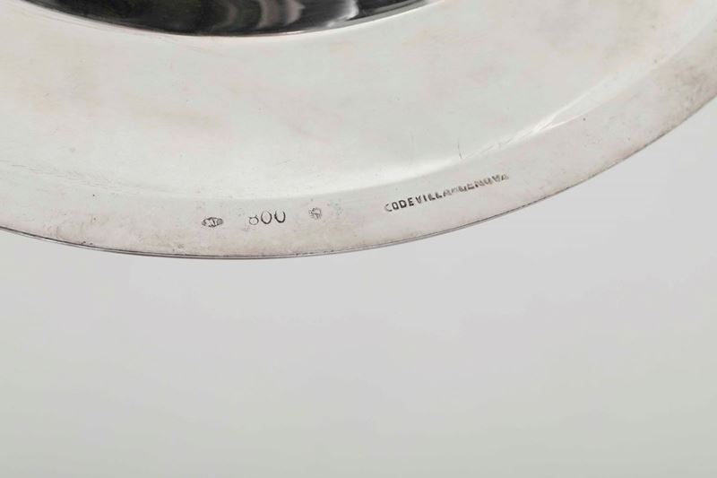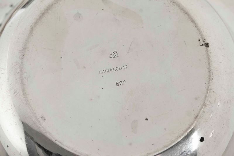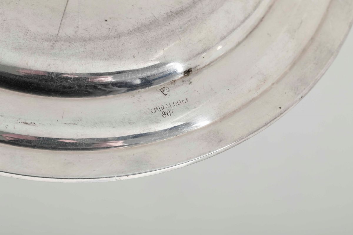 Otto piattini portapane e otto ciotoline argento con piattino. Argenteria italiana del XX secolo. Due differenti manifatture, una argentiere Miracoli, Milano e una argentiere non identificato per gioielleria Codevilla, Genova