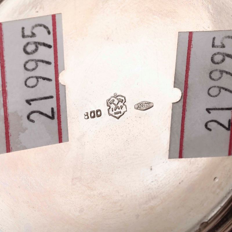Piccola caffettiera e lattiera in argento. Italia XX secolo. Lattiera argentiere Pradella Milano; caffettiera argentiere [..]