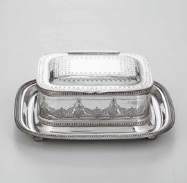 Scatola rettangolare con vassoio solidale in argento con interno vermeille. Argenteria italiana del XX secolo