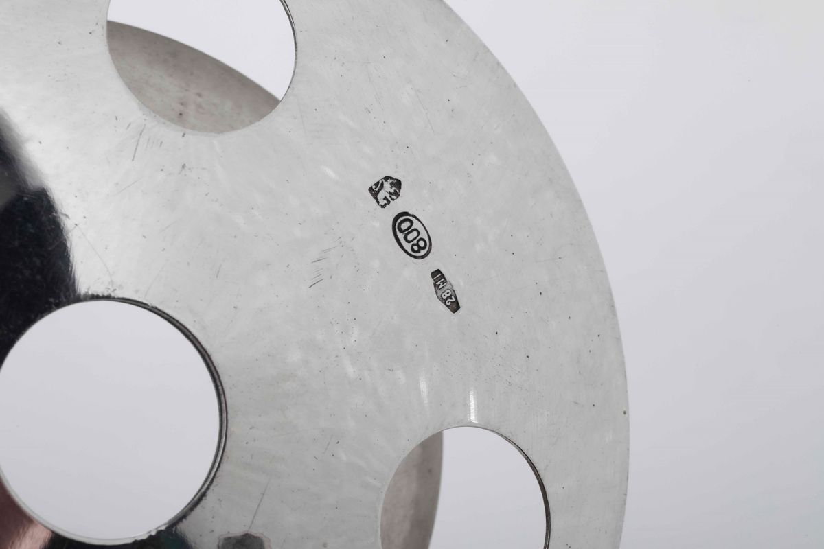 Secchiello da ghiaccio con pinza in argento. Argenteria italiana del XX secolo. Argentiere Alignani Milano
