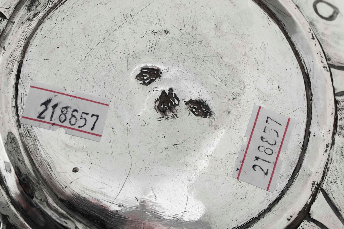 Secchiello in argento fuso, sbalzato e cesellato. Bolli di difficile lettura probabilmente Italia XIX secolo