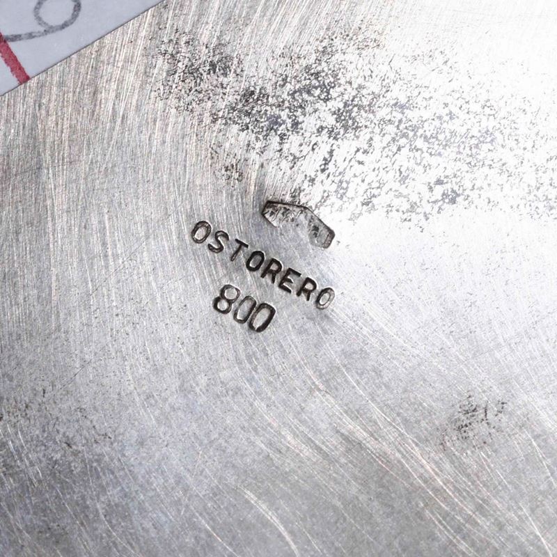 Servito da otto coppette in argento e vetro. Argenteria italiana del XX secolo. Incussa firma Ostorero