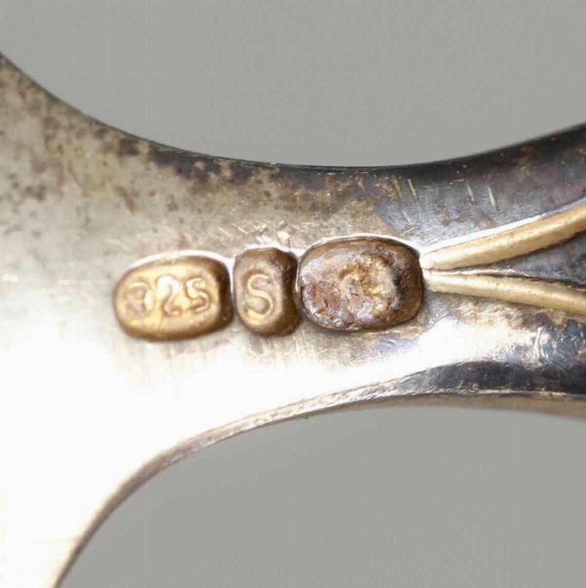 Set di cucchiaini da tè in argento dorato e smalti. Danimarca (?) XX secolo
