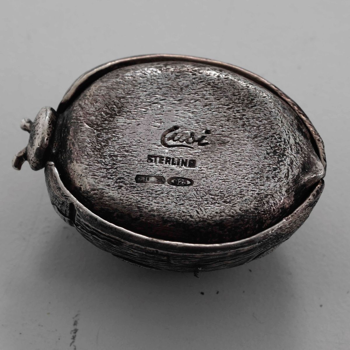 Tre oggetti in argento. Italia XX secolo. Portabiglietti e ciotola Argentiere Cusi Milano; scatola a coccinella Argentiere Pradella per Cusi milano