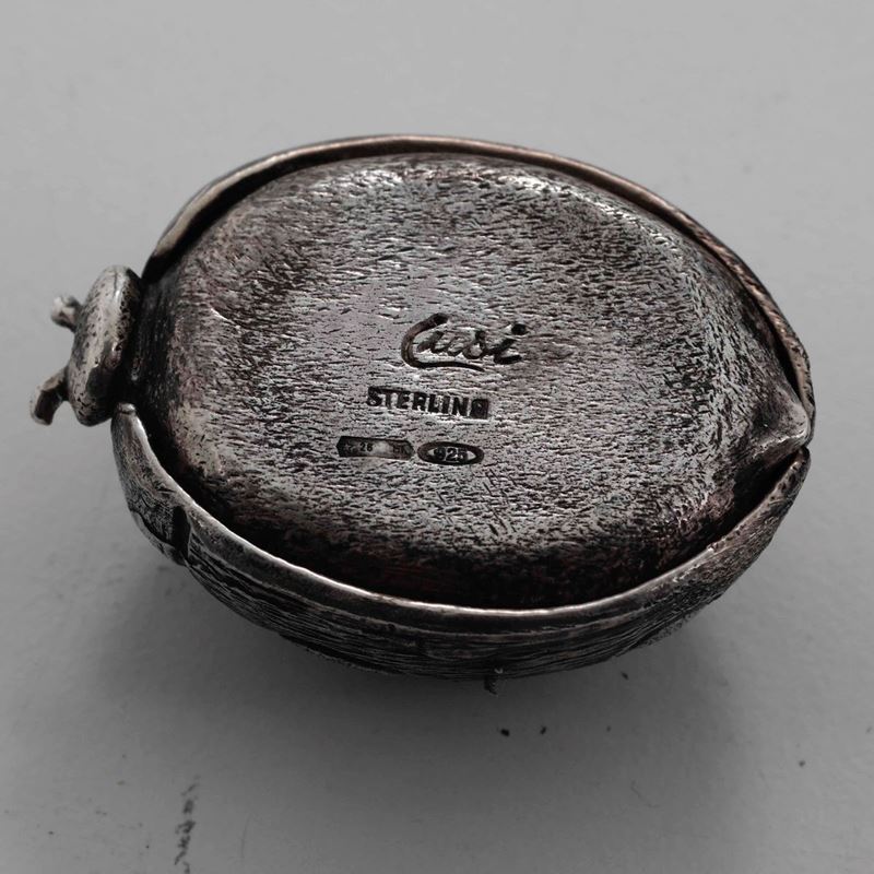 Tre oggetti in argento. Italia XX secolo. Portabiglietti e ciotola Argentiere Cusi Milano; scatola a coccinella Argentiere [..]