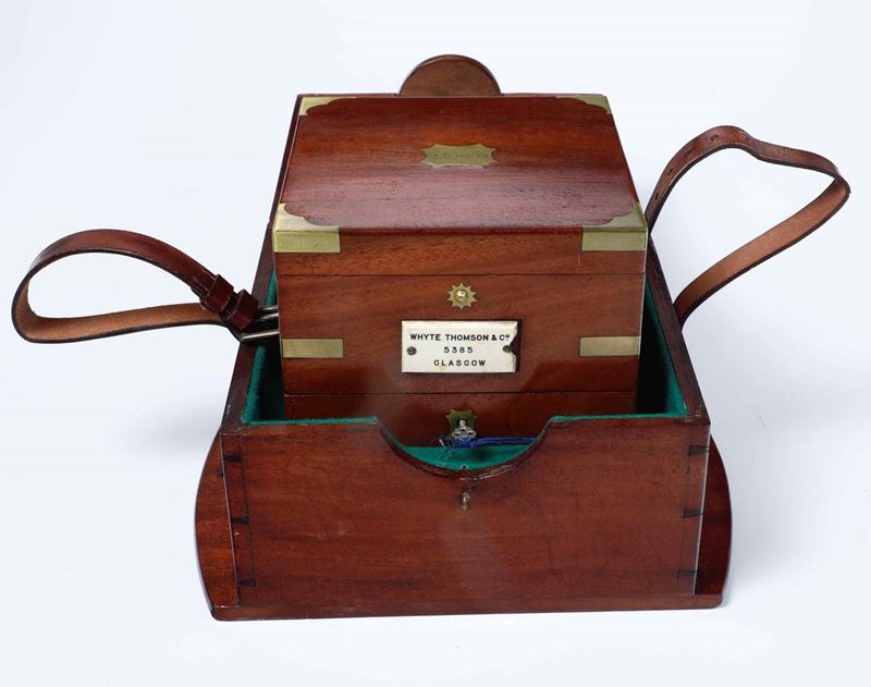 in cassetta di mogano con casetta di trasporto