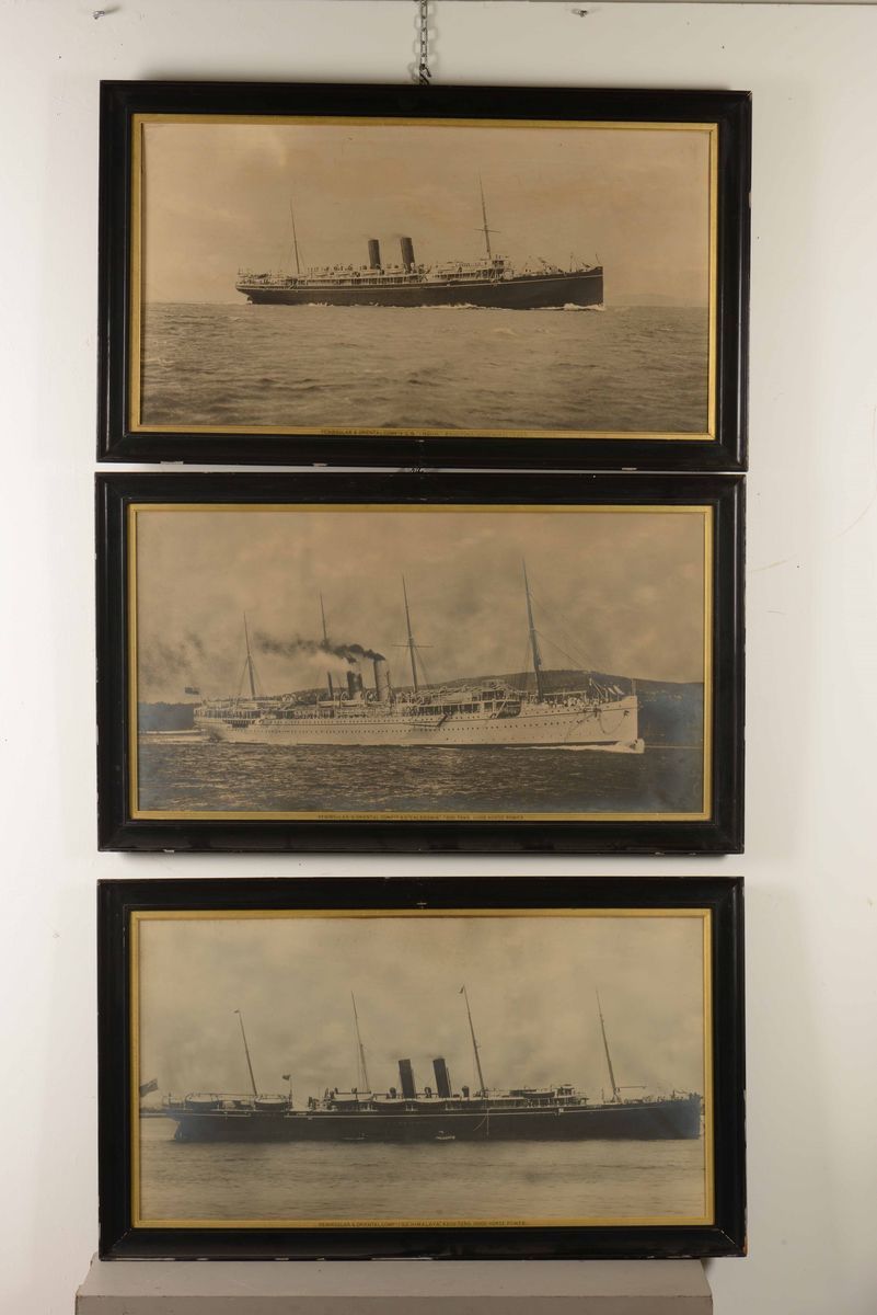 Lotto di 5 fotografie di navi in cornice. Due di Felix Giuglard