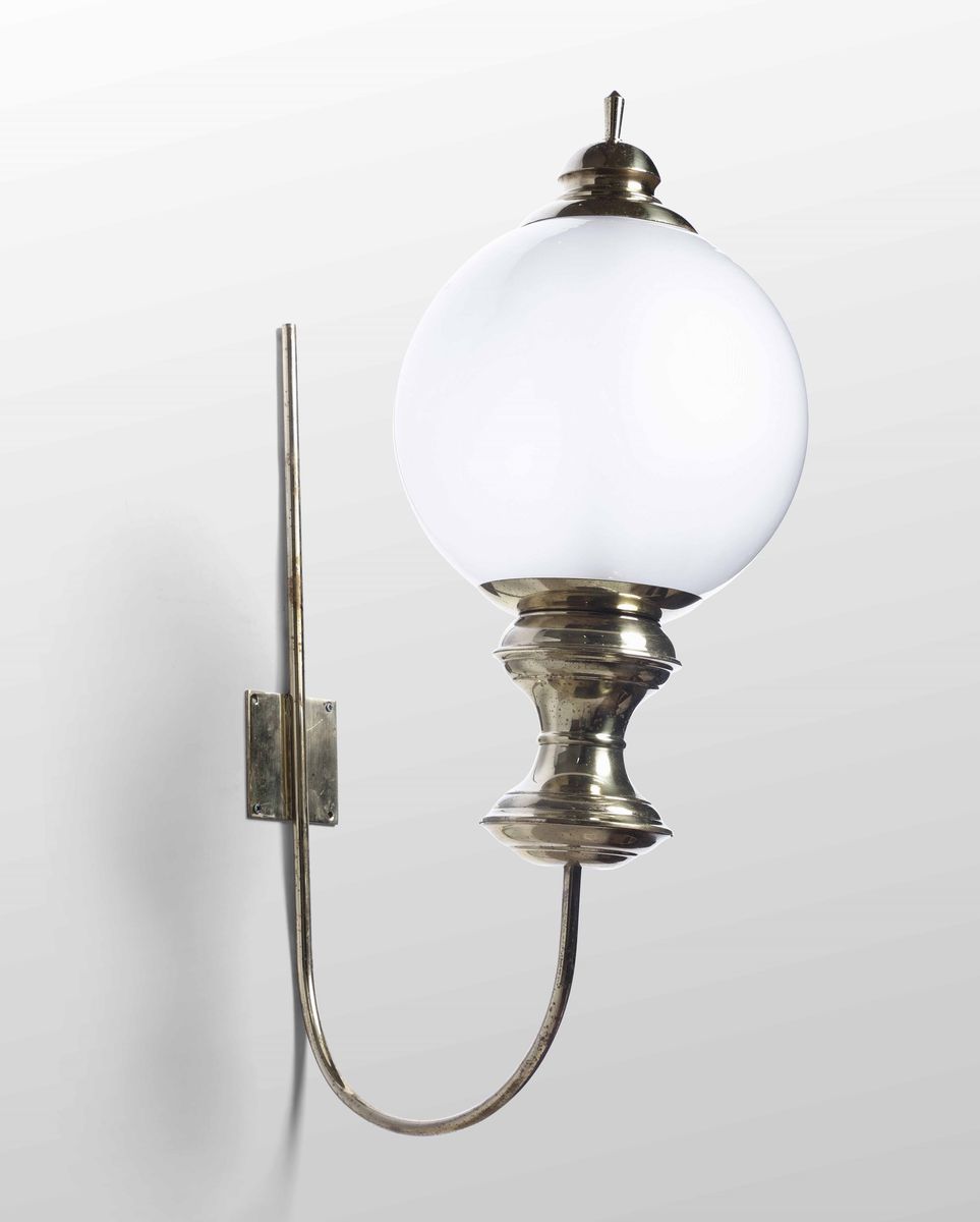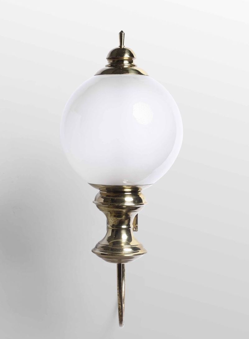 struttura in ottone e diffusori in vetro opalino.
