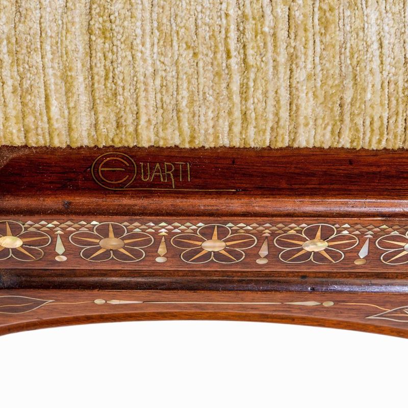Intarsi in madreperla, ottone e argento. Rivestimento in tessuto.