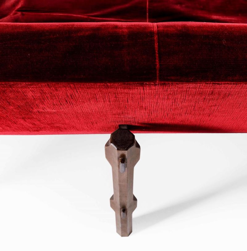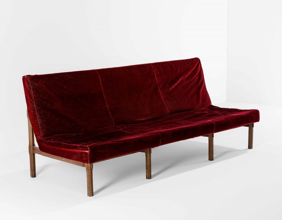 Divano mod. 869 con struttura in legno e rivestimento in tessuto.