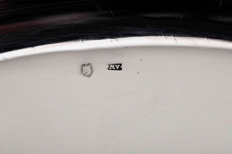 Lotto di 2 ciotole e 1 piatto in argento. Varie manifatture europee del XX secolo
