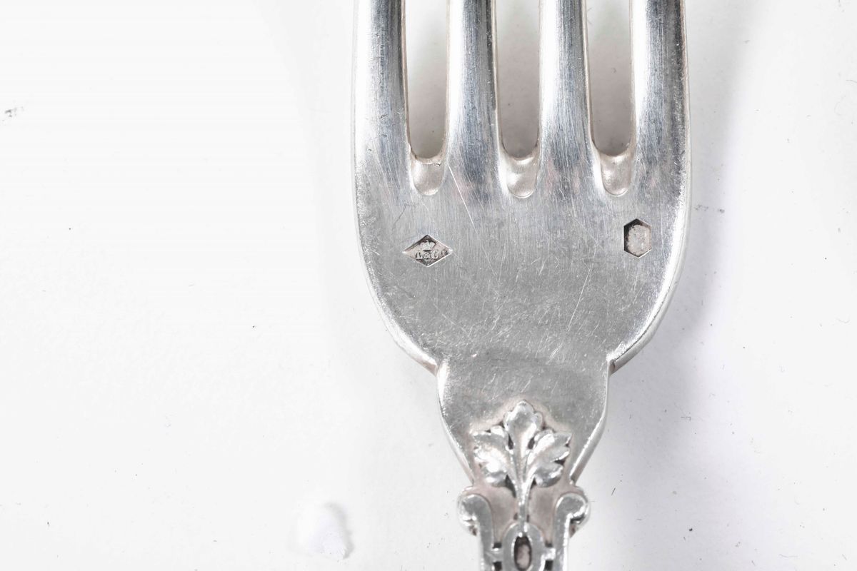 Servizio di posate in argento Argenteria francese del XX secolo. Monogramma con iniziali LD