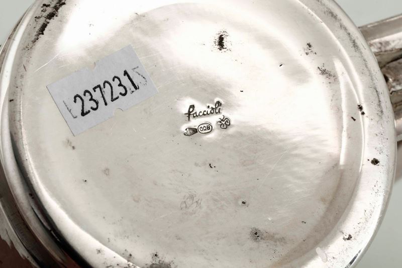 Brocca in argento. Argenteria milanese del XX secolo. Bollo con fascio littorio in uso dal 1935 al 1945. Argentiere Genazzi per Faccioli