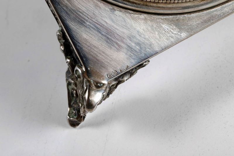Coppia di candelabri in argento fuso e cesellato. Argenteria fiorentina del XX secolo. Argentiere Bartolini Bartolozzi & [..]