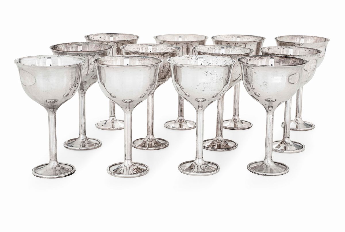 Dodici bicchieri in argento sterling. Design Antonio Piva per San Lorenzo, 1970