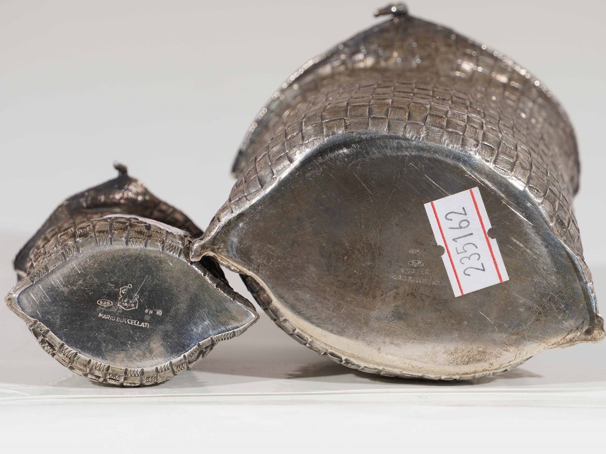 Due cestini, Maison Mario Buccellati Argento fuso, sagomato e dorato. Italia XX secolo. Argentiere Pradella Milano.