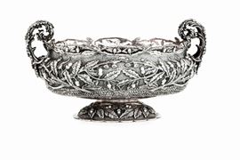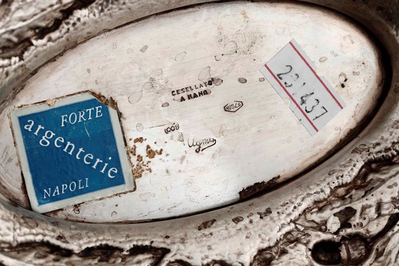 Importante centrotavola in argento fuso e cesellato. Argenteria artistica milanese del XX secolo. Argentiere Mazzuccato