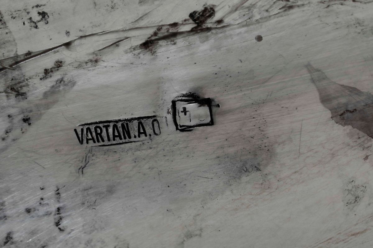 Monumentale centrotavola a foggia di cigno in argento fuso e cesellato. Persia XX secolo. Incussa iscrizione "VARTAN.A.O. [..]