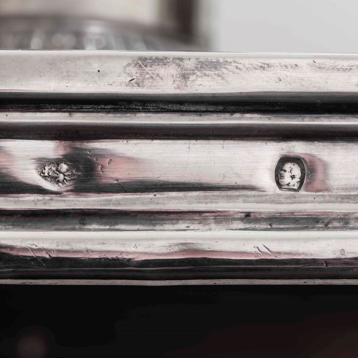Oliera in argento fuso, sbalzato e cesellato. Argenteria italiana inizi del XIX secolo. Bolli di garanzia per dipartimenti piemontesi (Nizza?) e dell'argentiere (non identificato)