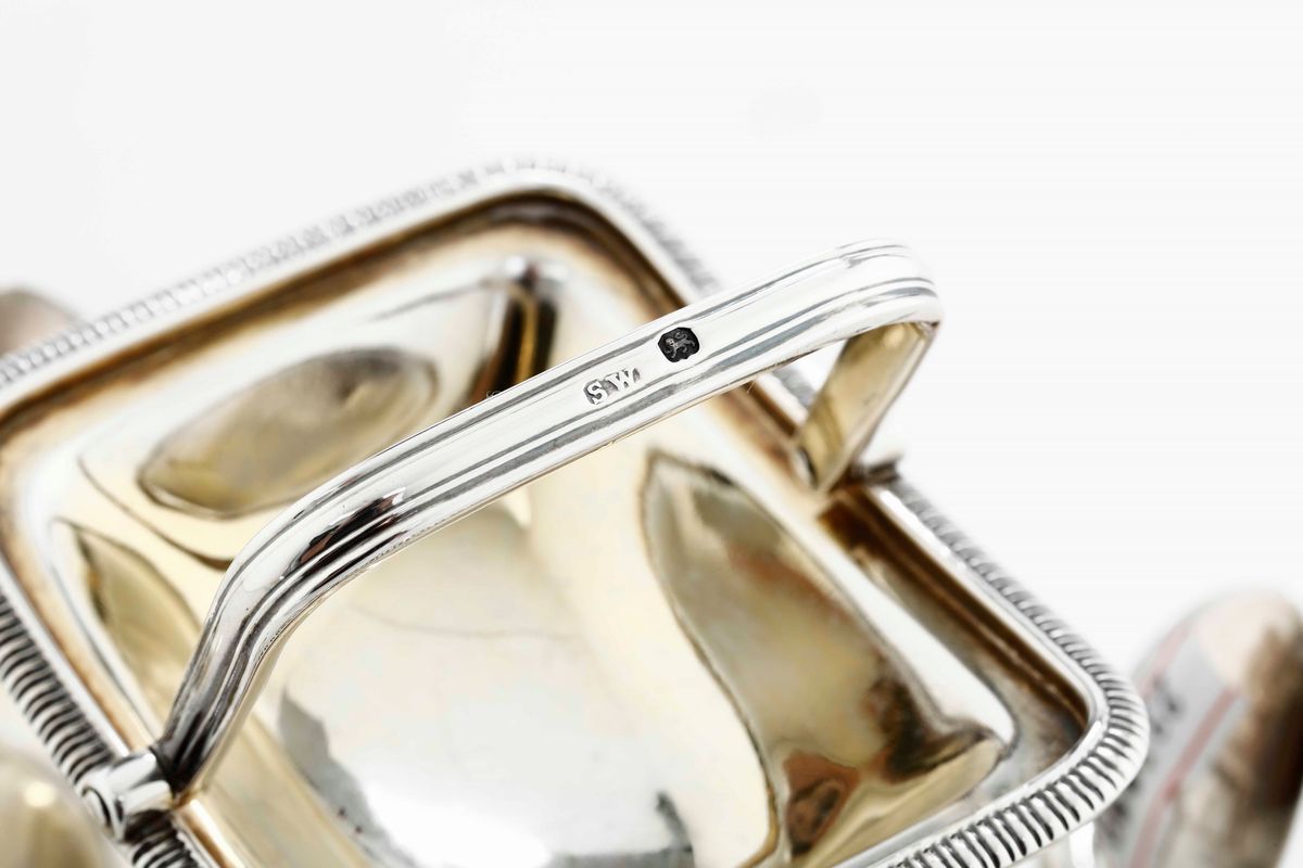 Portauova in argento. Bolli della città di Londra per l'anno 1808 e dell'argentiere Samuel Whitford