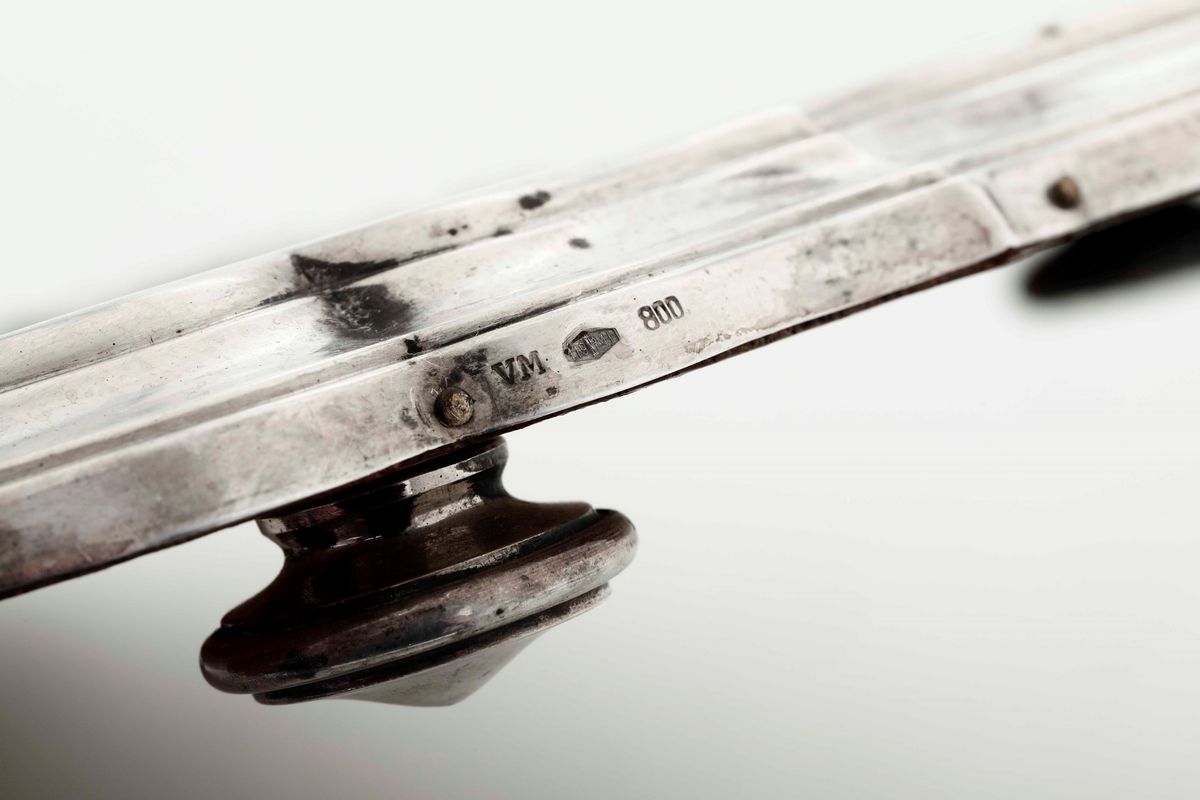 Presentoire in argento e specchio. Argenteria milanese del XX secolo. Bollo con fascio littorio in uso dal 1935 al 1945. [..]