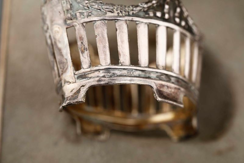 Quattro saliere e senapiera in argento. Argenteria tedesca degli inizi XX secolo