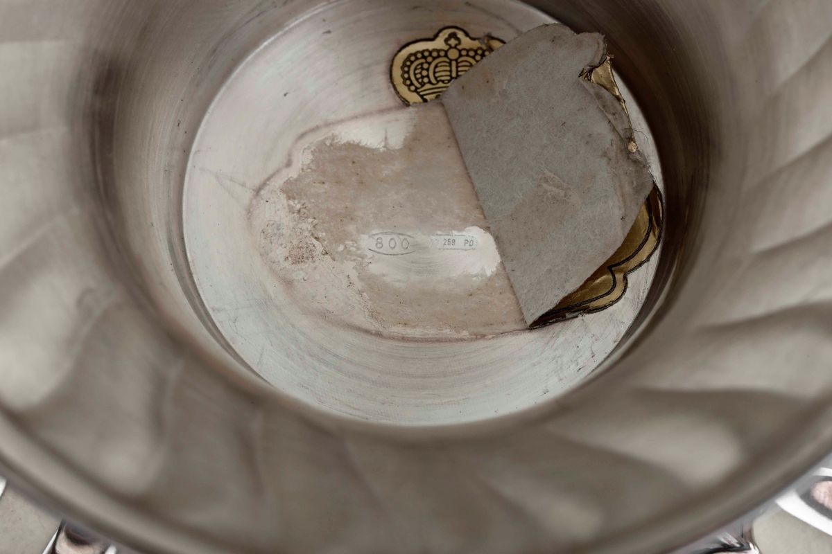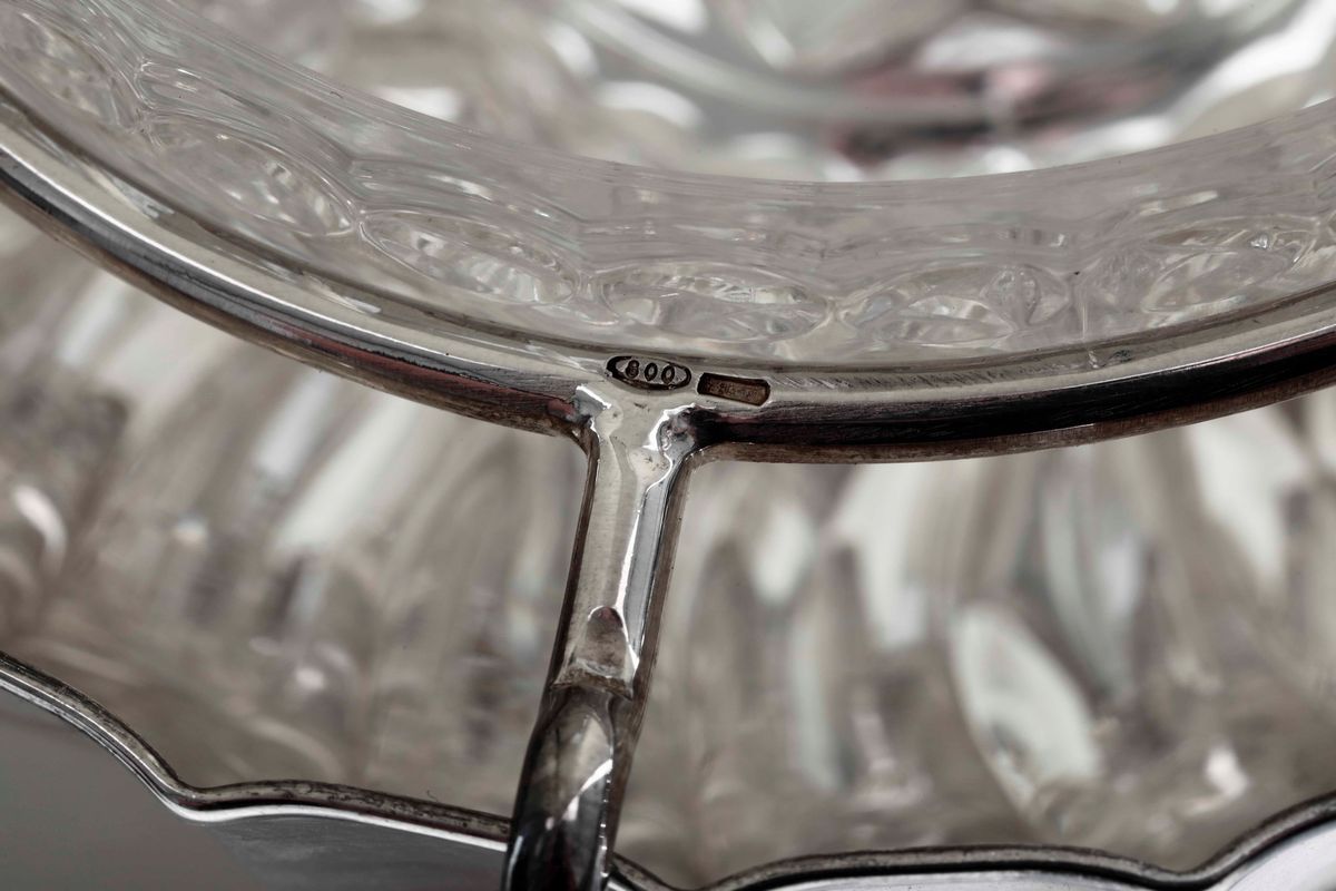 Salsiera in argento e vetro molato. Argenteria veneta del XX secolo