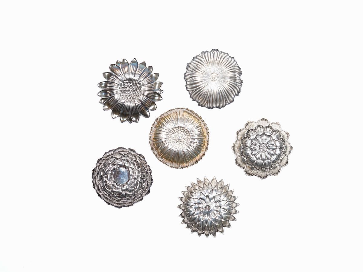 Sei segnaposto a fiore, Gian Maria Buccellati Argento fuso e sagomato Italia XX secolo
