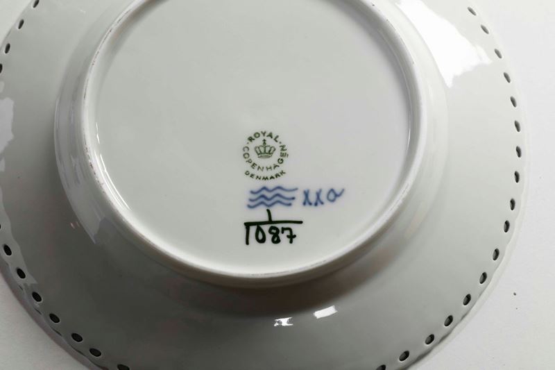 Porcellana. Marca: onde in blu; "Royal Copenhagen Denmark" con corona in verde. Conservazione: ottima