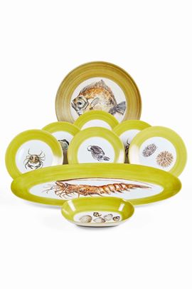 Servizio da pesce Francia, Vallauris, seconda metà del XX secolo Dipinto a mano da Marcel Guillot