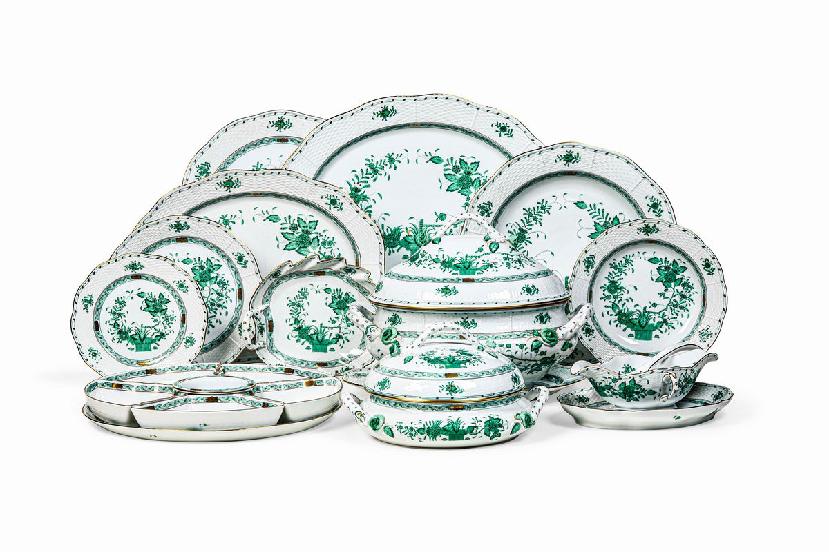 Servizio da tavola “Indian Basket Green” Ungheria, Manifattura Herend, seconda metà del XX secolo