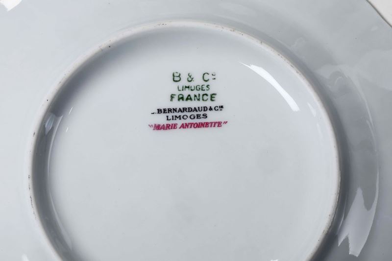 Porcellana. Marca: "B & Co Limoges France" in verde; "Bernardaud & Co. Limoges". Conservazione: ottima
