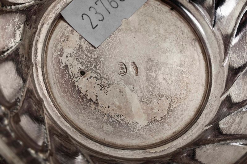 Servizio da tè in argento. Argenteria artistica italiana del XX secolo. Bolli consunti di difficile lettura