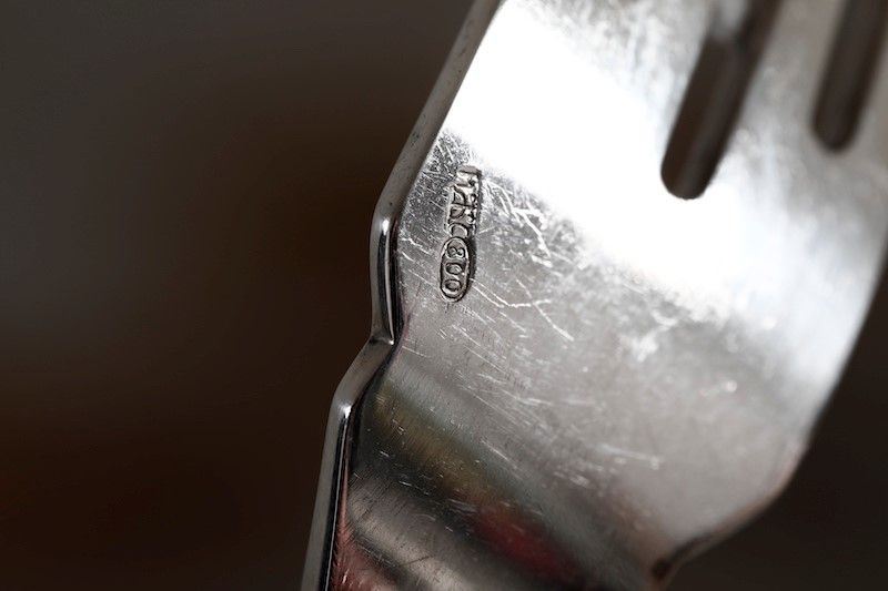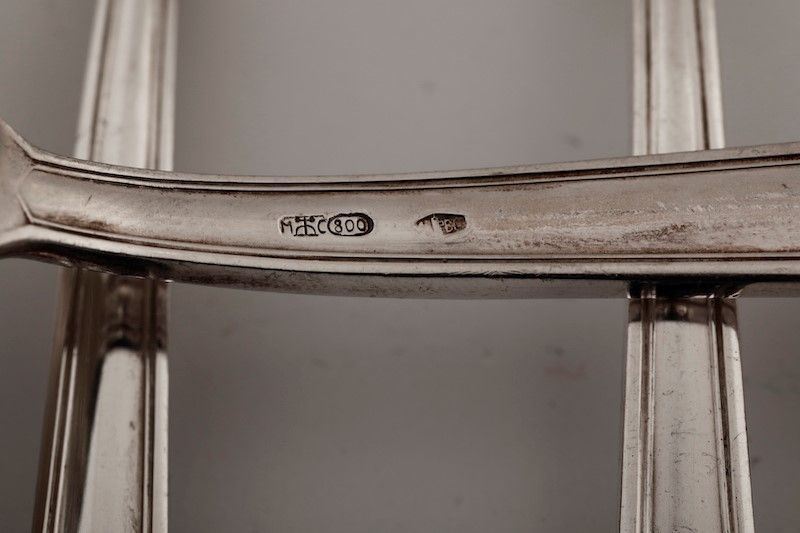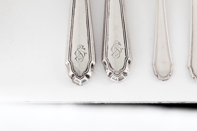 Servizio di posate in argento. Argenteria italiana del XX secolo. Bollo con fascio littorio in uso dal 1935 al 1945. Argentiere Clementi, Bologna