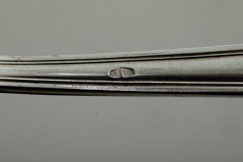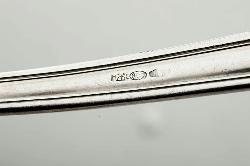 Servizio di posate in argento. Argenteria italiana del XX secolo. Bollo con fascio littorio in uso dal 1935 al 1945. Argentiere [..]