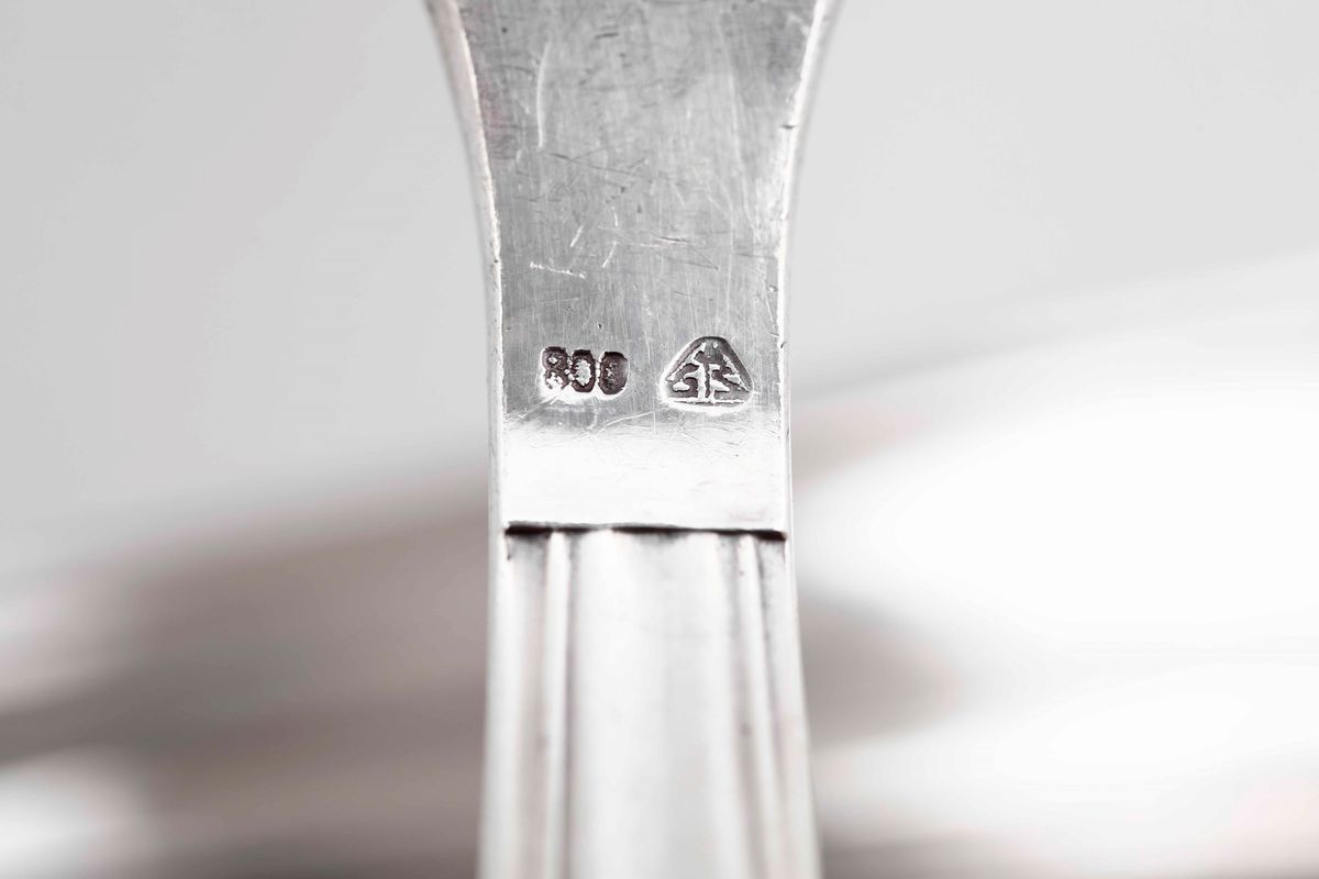 Servizio di posate in argento. Argenteria veneta del XX secolo. Argentiere Zaramella, Padova