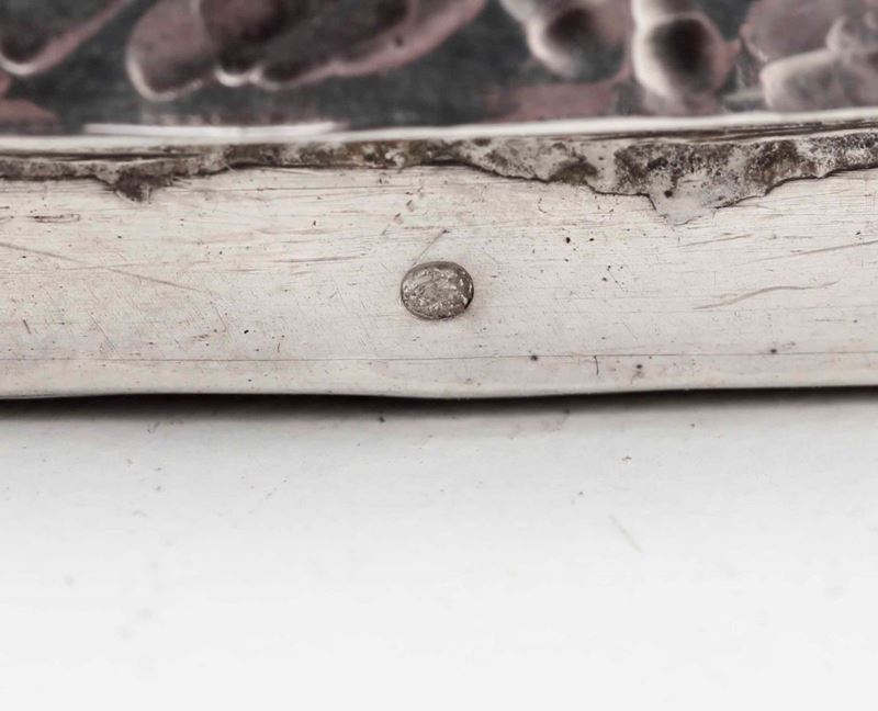 Terrina in argento cesellato a forma di lattuga. Bolli di importazione francesi della fine del XIX secolo