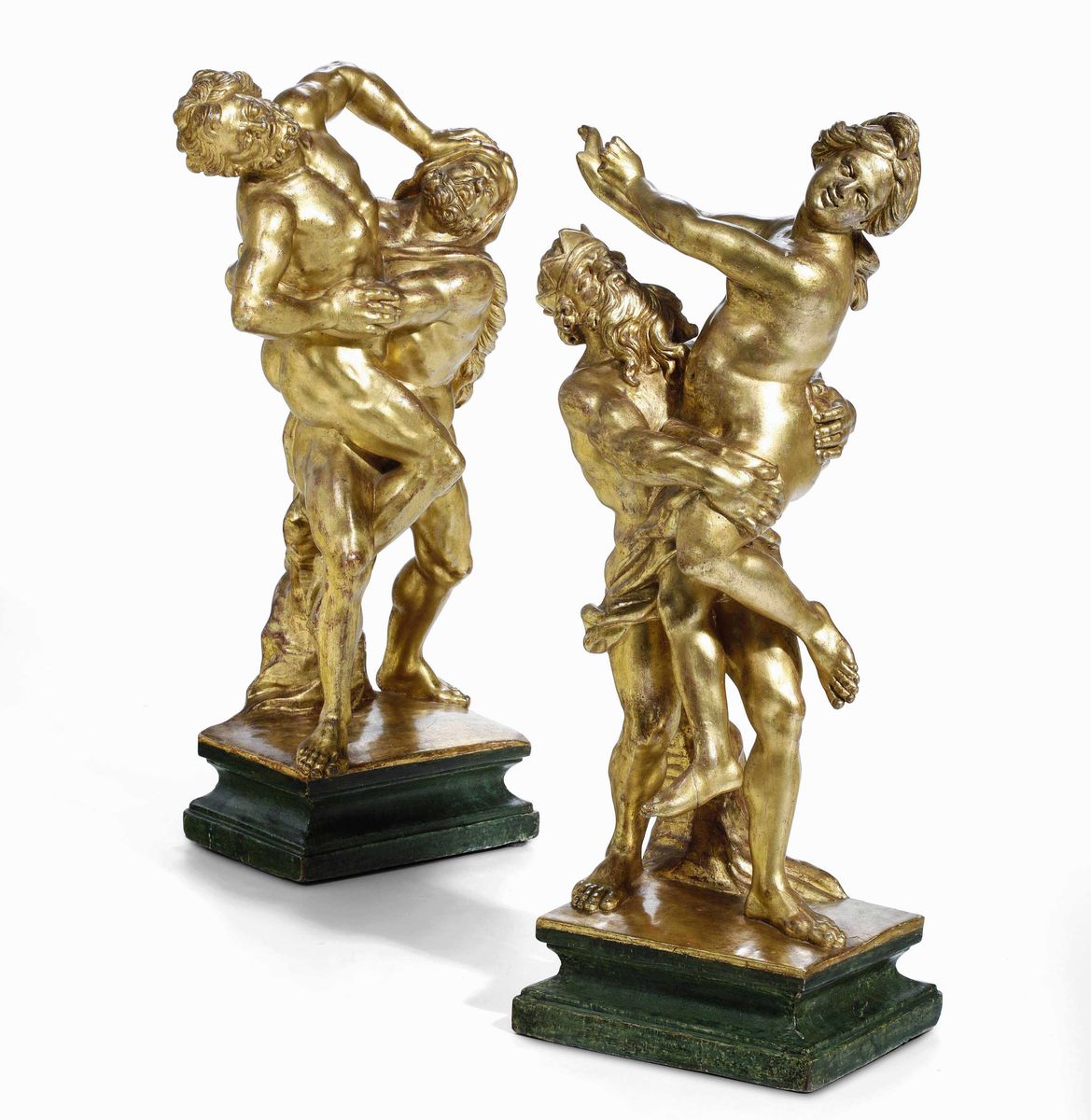 Ratto di Proserpina e Ercole e Anteo Legno scolpito, dorato e dipinto Arte Barocca romana del XVII secolo