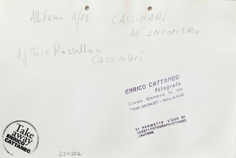 Enrico Cattaneo Lotto composto da 6 fotografie: Baj Pinelli; Baj Pinelli; Alik Cavaliere con la moglie Rossella e la figlia [..]