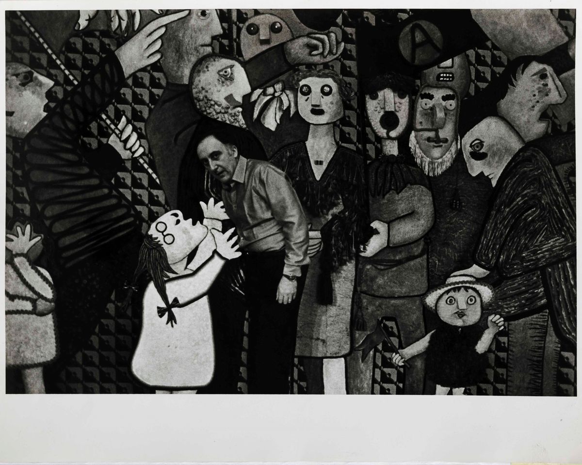 Lotto composto da 6 fotografie: Baj Pinelli; Baj Pinelli; Alik Cavaliere con la moglie Rossella e la figlia Tania; Cassinari e Rossello, Milano 4/71; Installazione di Staccioli a Volterra, 1972