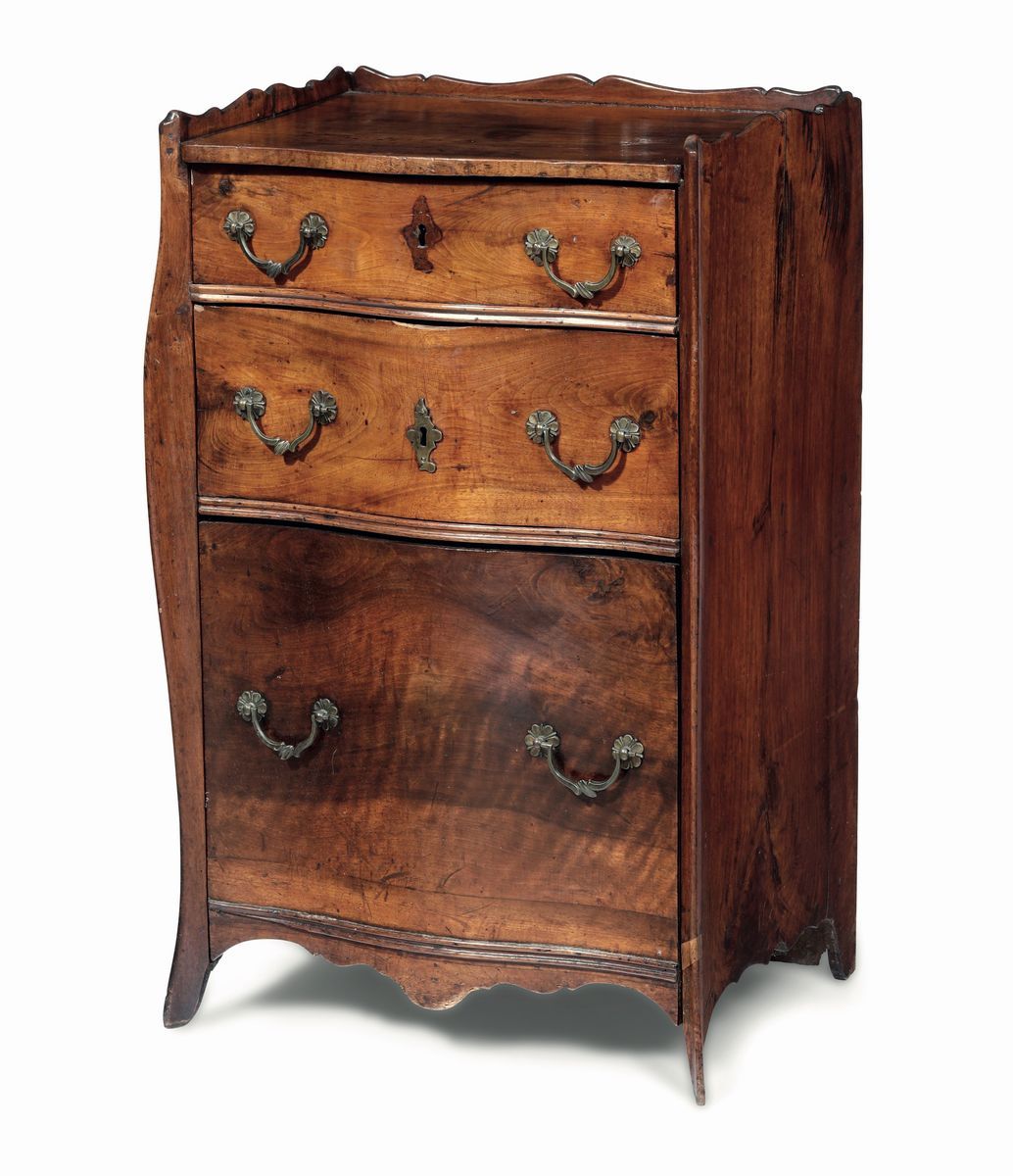 Comodino in noce a tre cassetti. Genova XVIII secolo